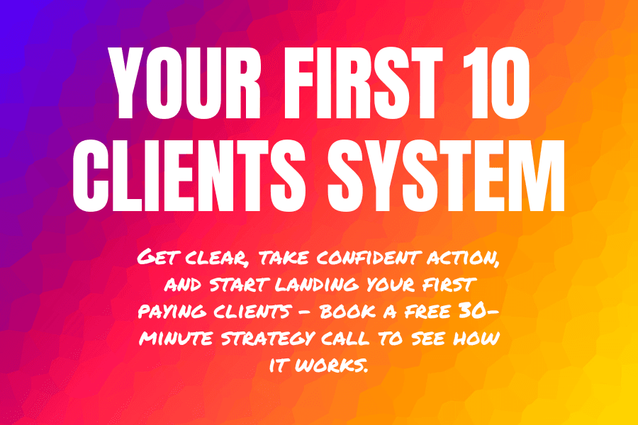 If this sounds interesting, book your free First 10 Clients Strategy Call and start turning your goal of financial and time freedom into reality.